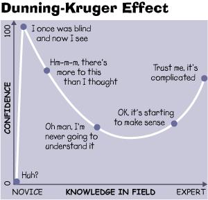 It reflects the move along the Dunning-Kruger curve as the expert learns what ‘not to do’ as their experience grows in contested areas …